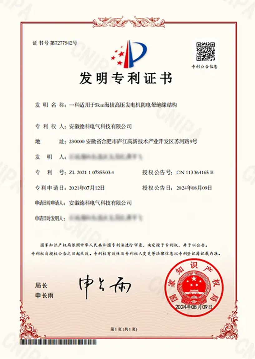 由安徽LETOU乐投电气科技有限公司申请的《一种适用于5km海拔高压发电机防电晕绝缘结构》发明专利和《一种发电机减震底座》等五项实用新型专利,获得了国家知识产权局的批复,正式获得专利授权。LETOU乐投电气一直坚持自主研发和技术创新,所有产品皆拥有自主知识产权,截至目前共获得国家授权专利64项(其中:发明专利19项)。