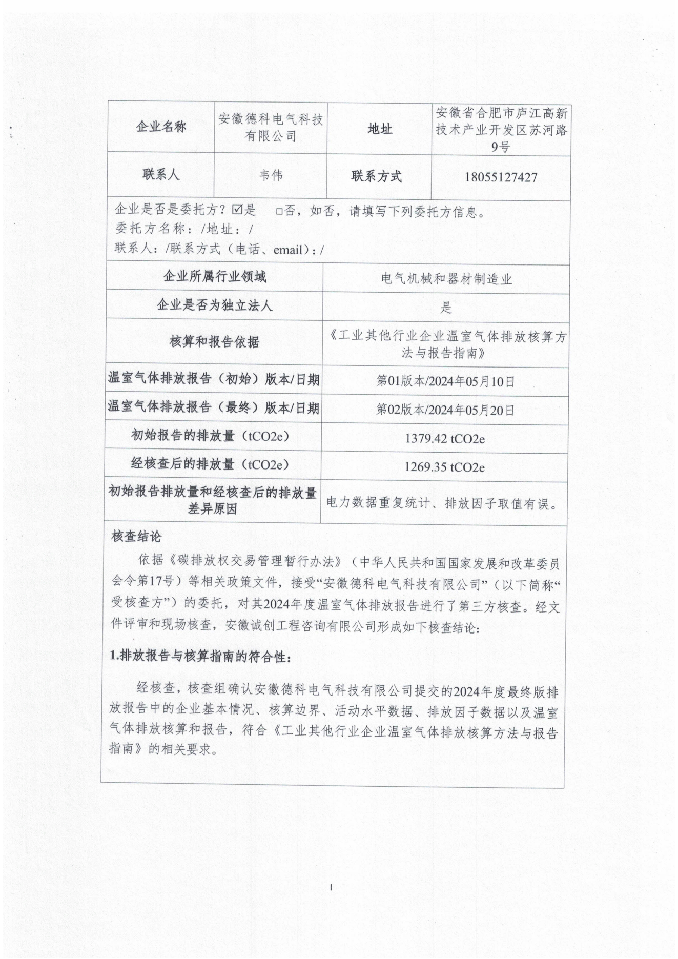 2024年LETOU乐投电气温室气体排放核查报告